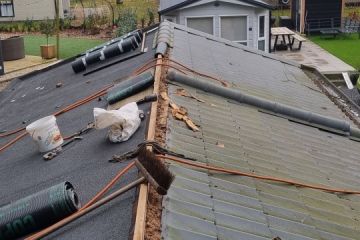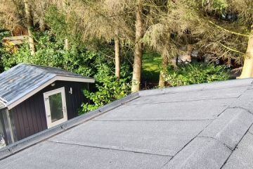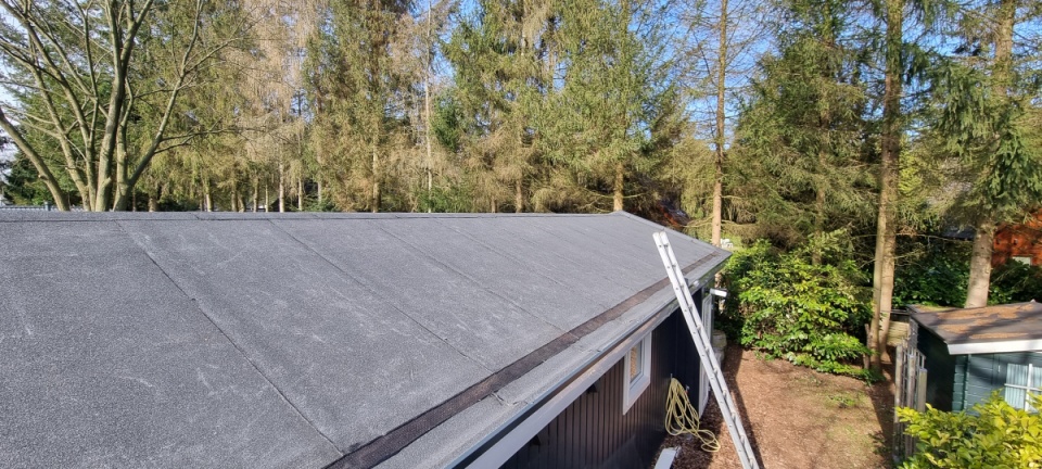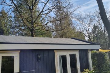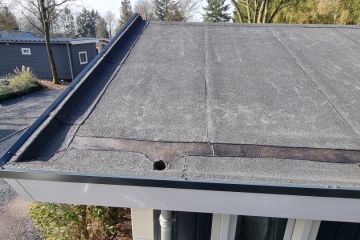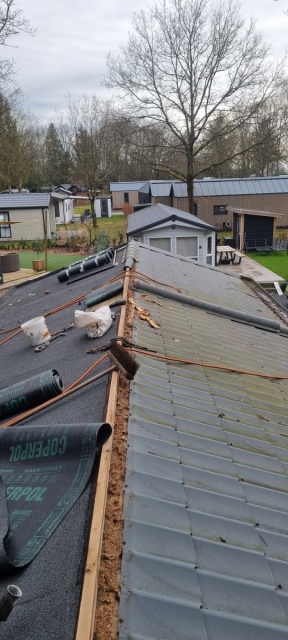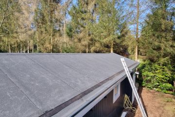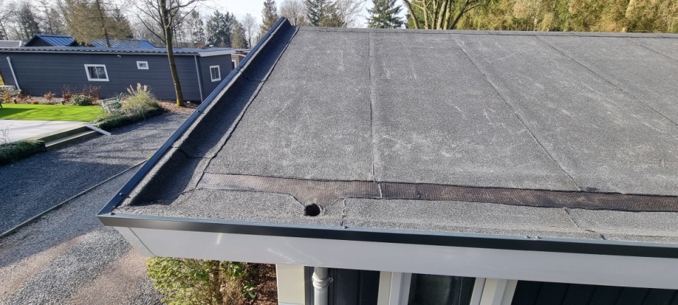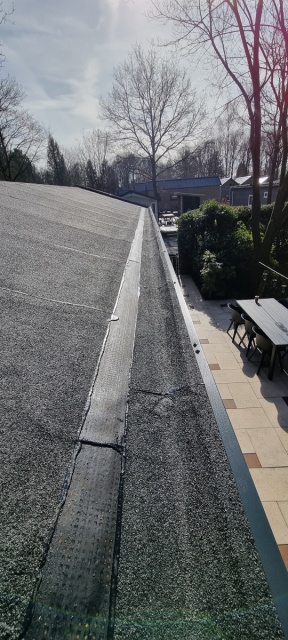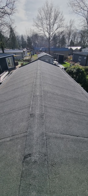 In Epe hebben we onlangs een dakrenovatie van een chalet gedaan. De dakplaten en houten tengels verwijderd. Over het bestaande dakbeschot hebben we een nieuwe onderlaag mechanisch bevestigd en hierover een app bitumen 470k24 toegepast in kleur antraciet.