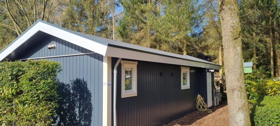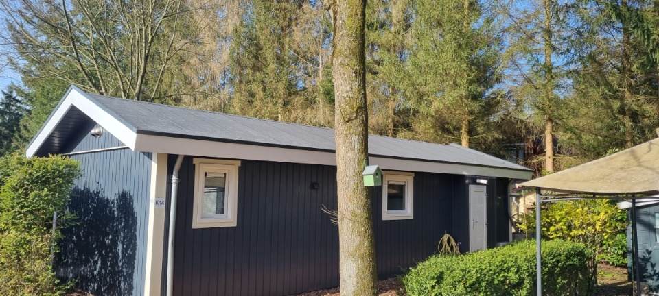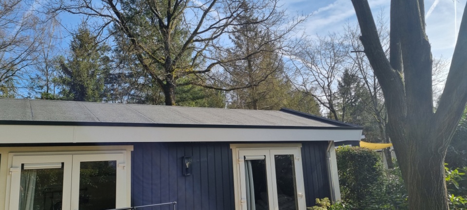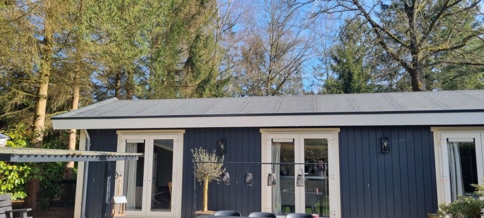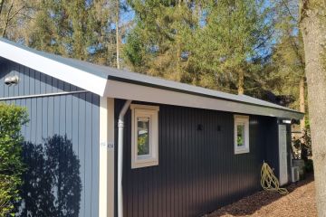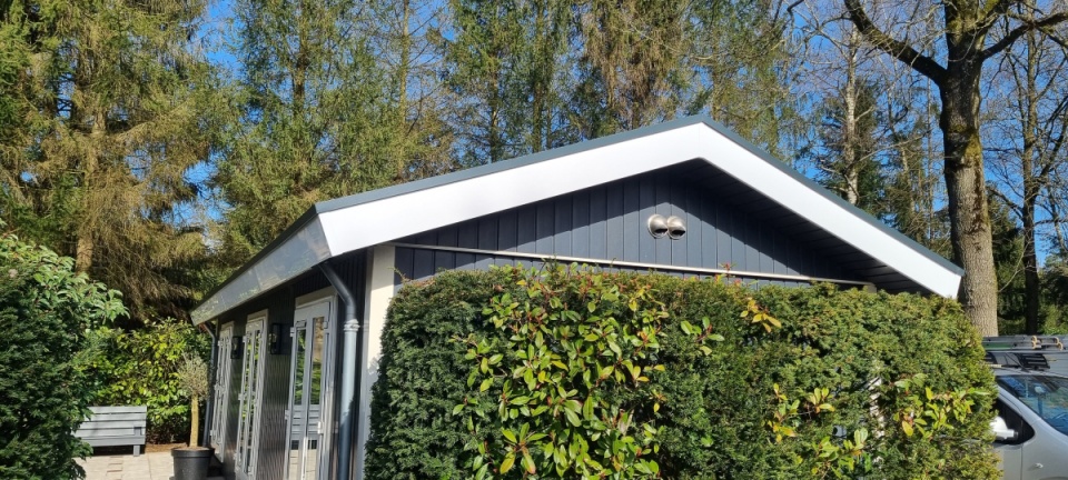 Daarnaast is deze chalet in Epe voorzien van een nieuwe dakrand (afdekkap) afwerking in de kleur antraciet.