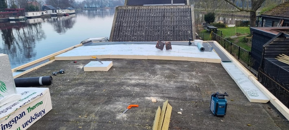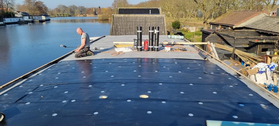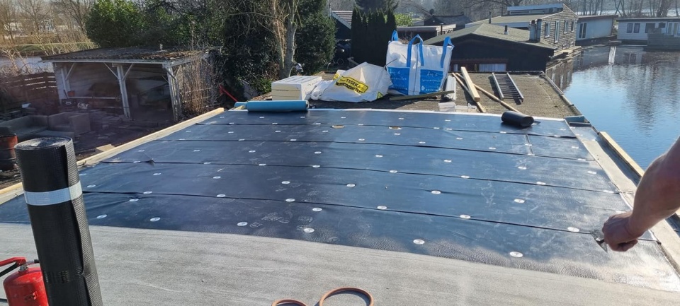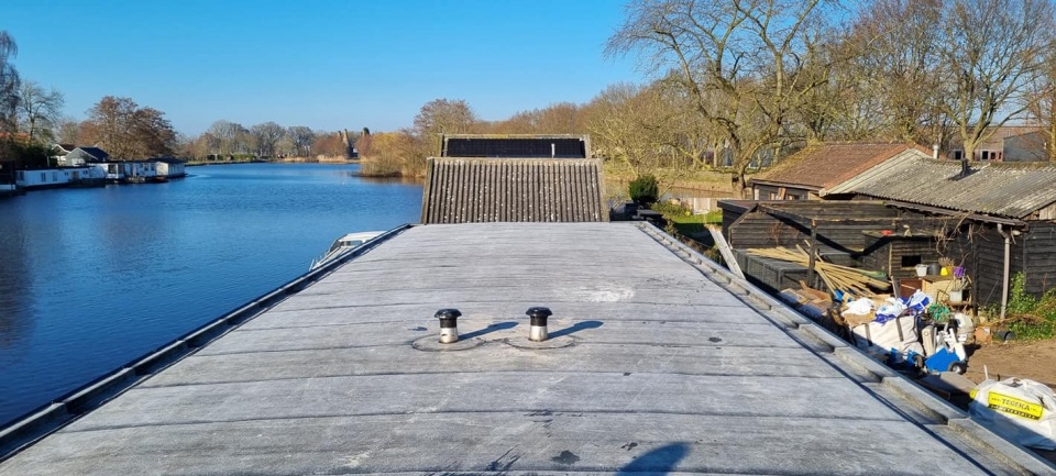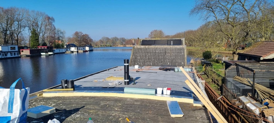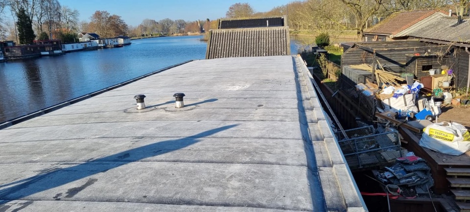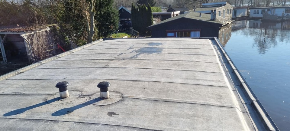 Renovatie plat dak woonboot Meppel